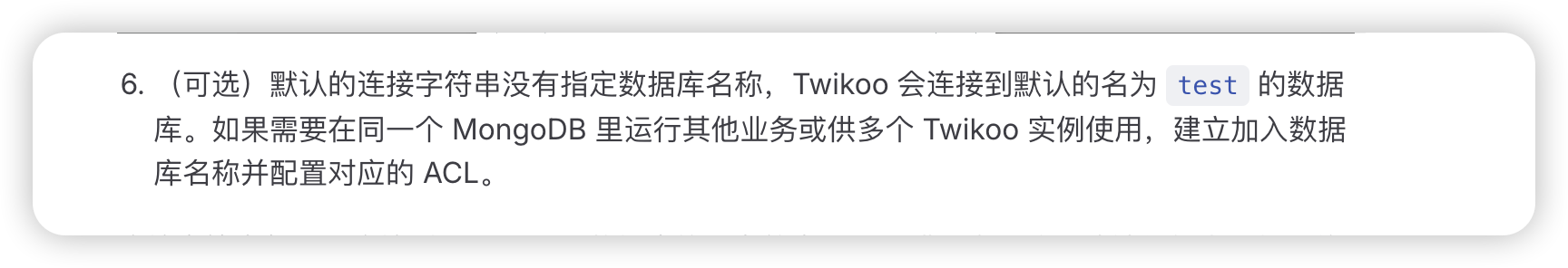 于是又回到 twikoo 的文档中一顿看,找到了这句话。 Twikoo 会连接到默认的名为 test 的数据库
