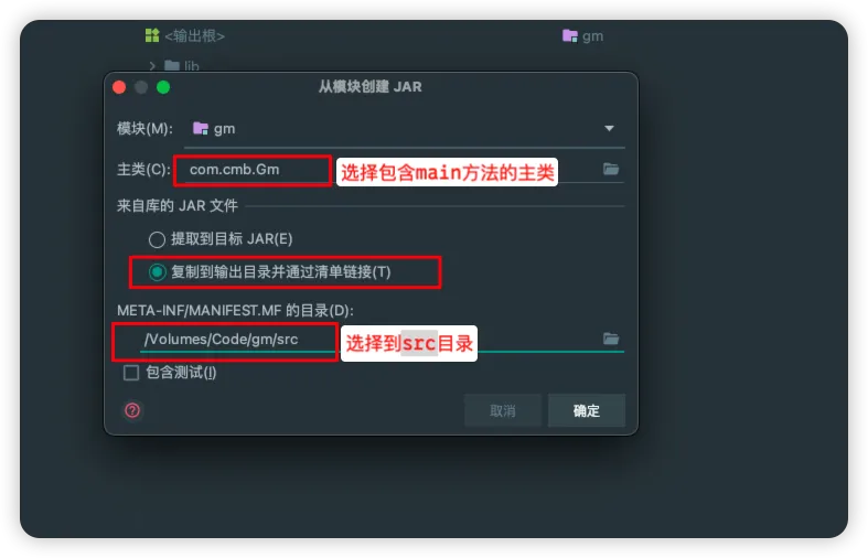 - 选择你的主类,配置文件目录以及输出目录