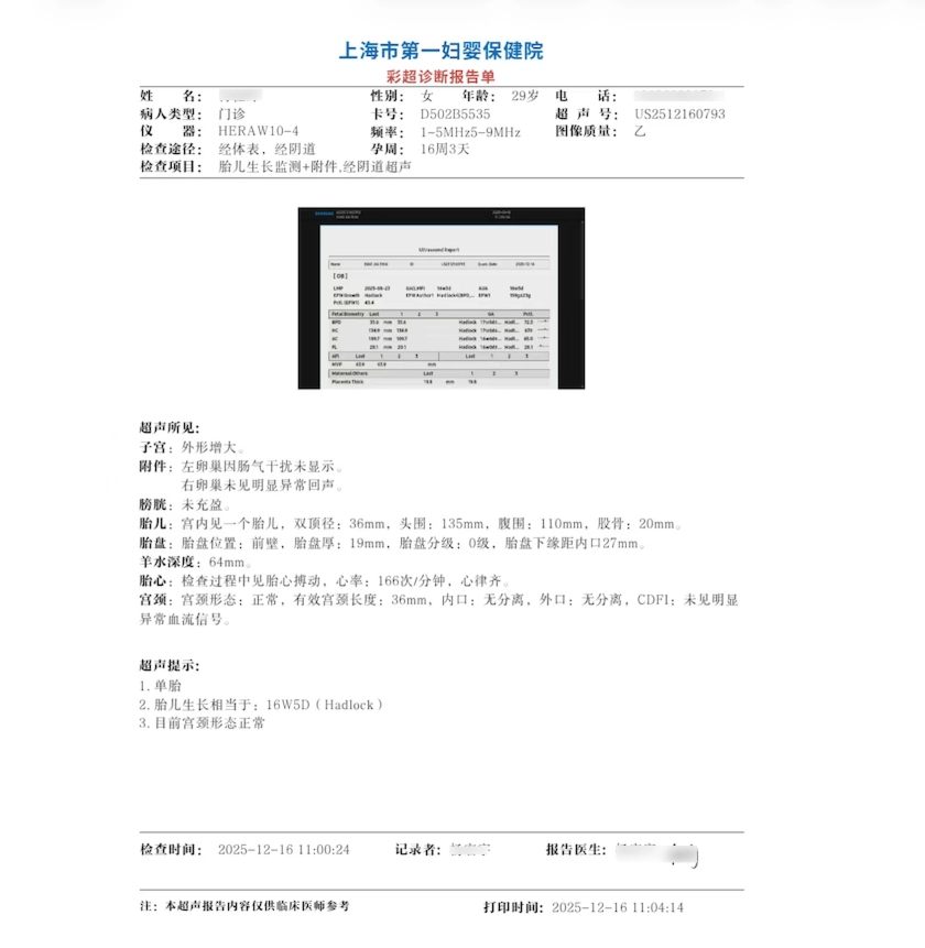 第五次b超了。这次是胎儿生长检测和宫颈长度检测.不过血压好像有点偏高,需要关注一下了