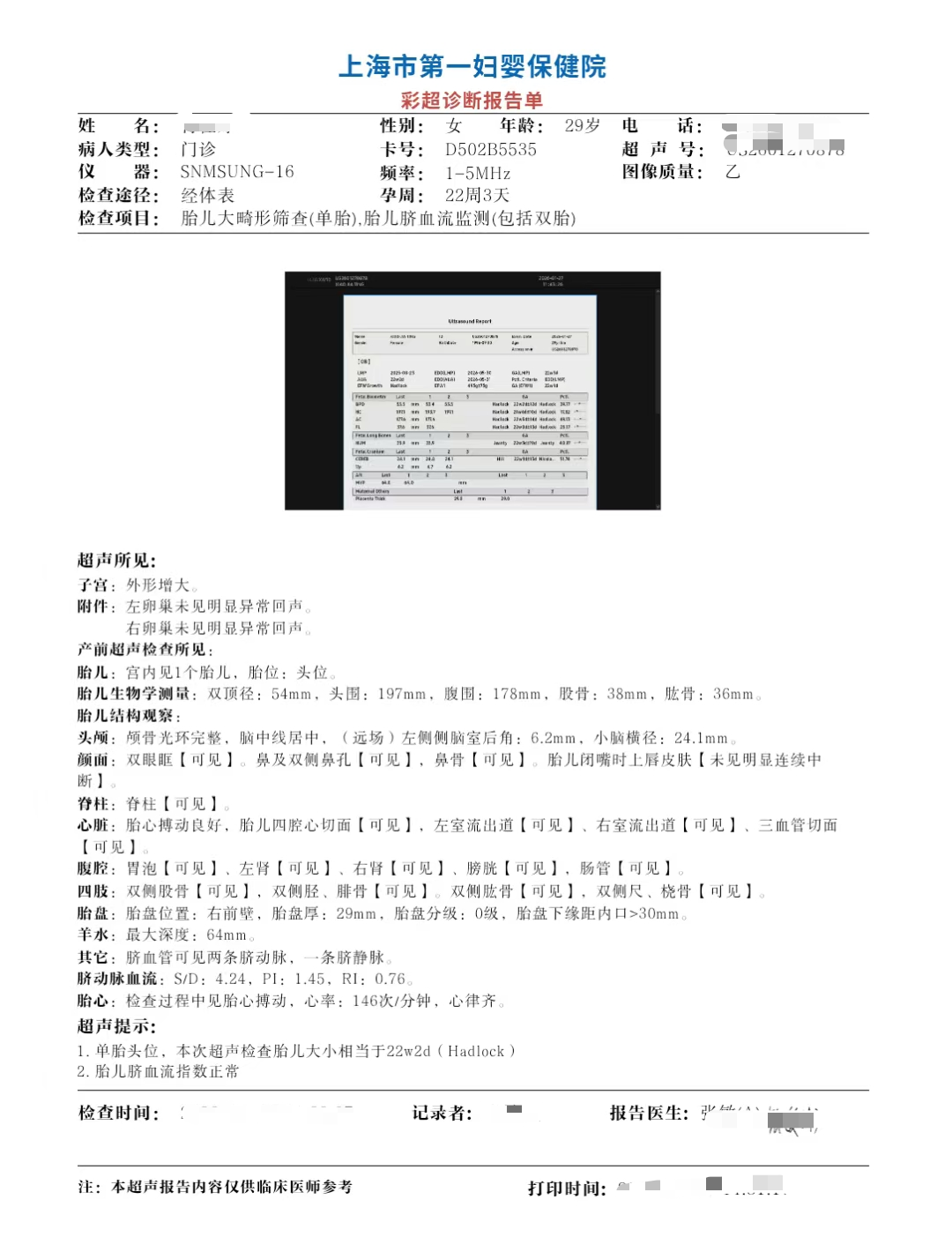 第五次b超了。这次是胎儿生长检测和宫颈长度检测.不过血压好像有点偏高,需要关注一下了